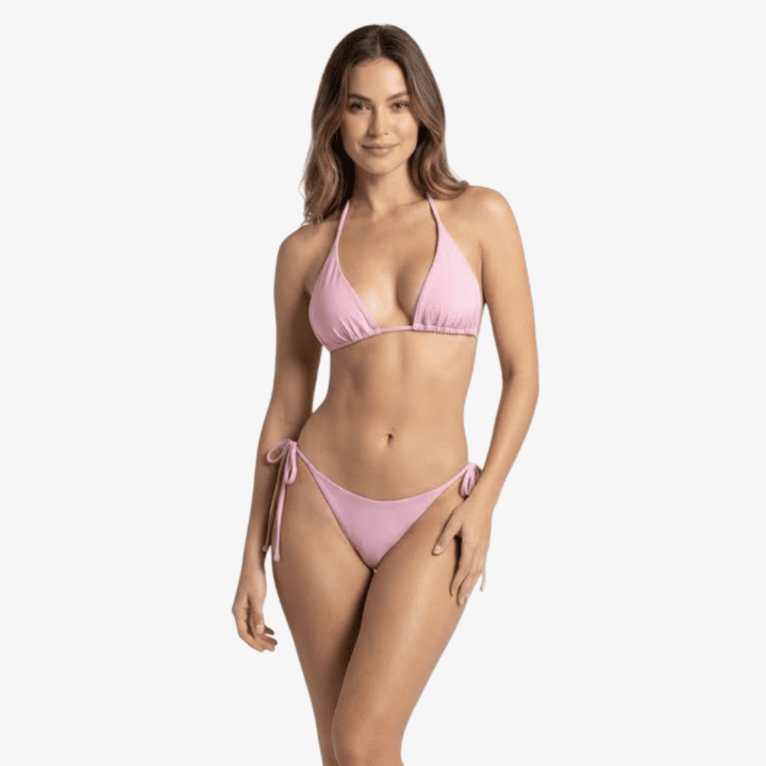 Turn heads with our ARUBA bikini – the perfect blend of elegance, charm, and tropical vibes. Its soft pastel pink hue flatters all skin tones, while the classic triangle top and adjustable ties at the neck, back, and sides ensure a custom, comfortable fit.