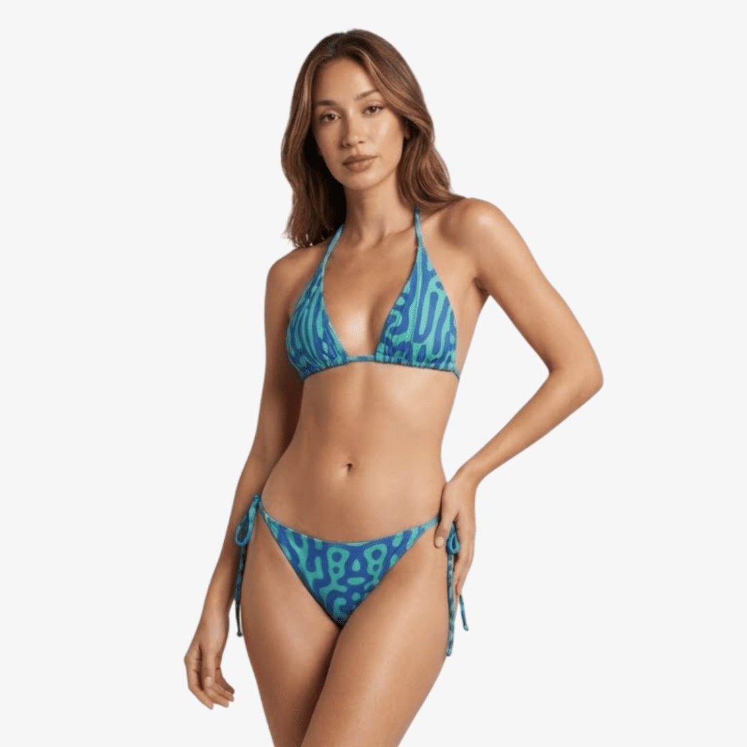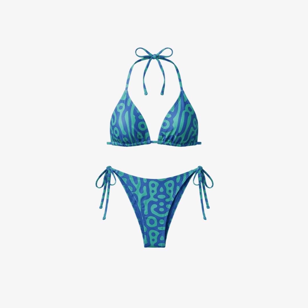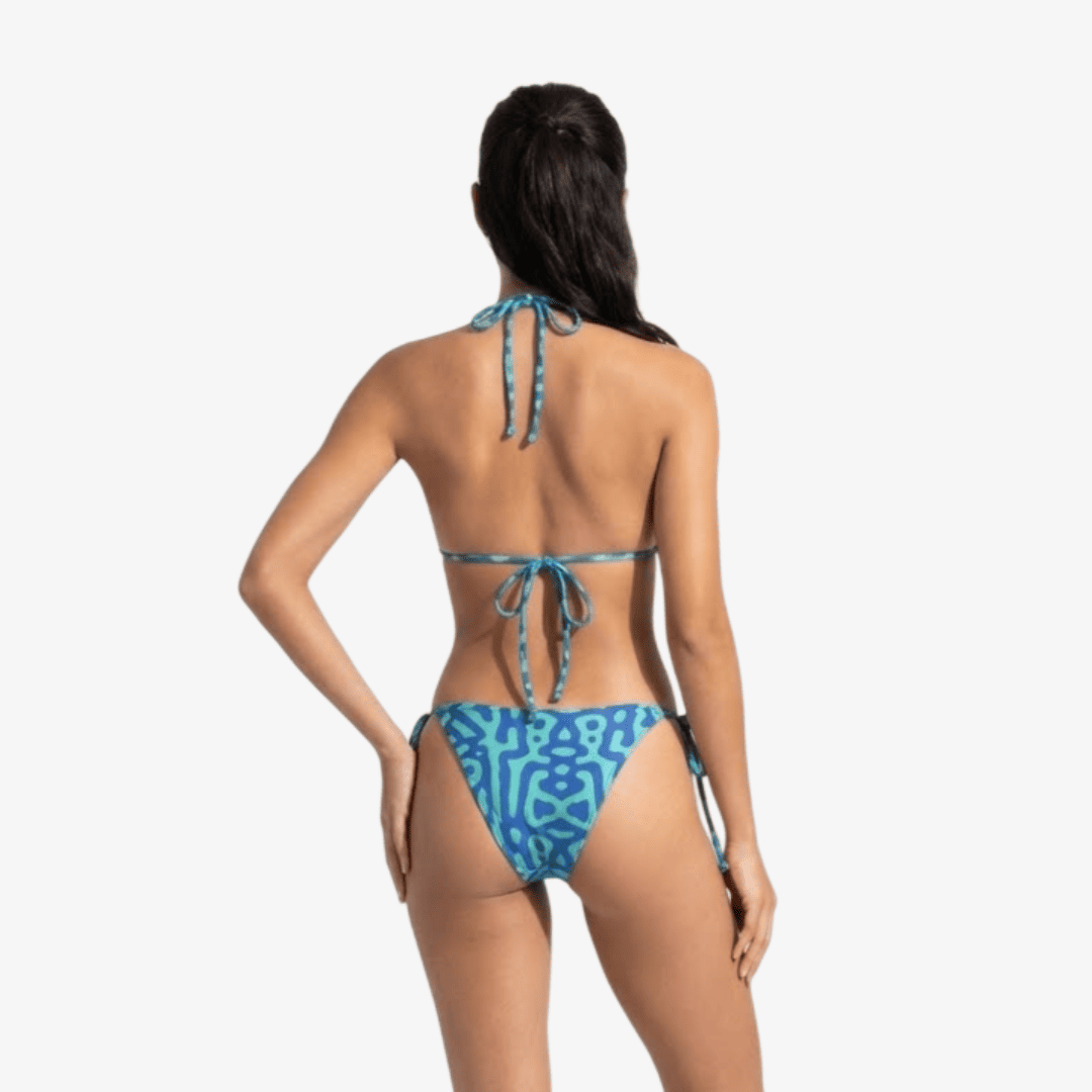 Embrace the summer mood with our BALI bikini. Featuring a bold blue and green print that channels ocean freshness and jungle magic, this set is made for adventurous souls who love to stand out.