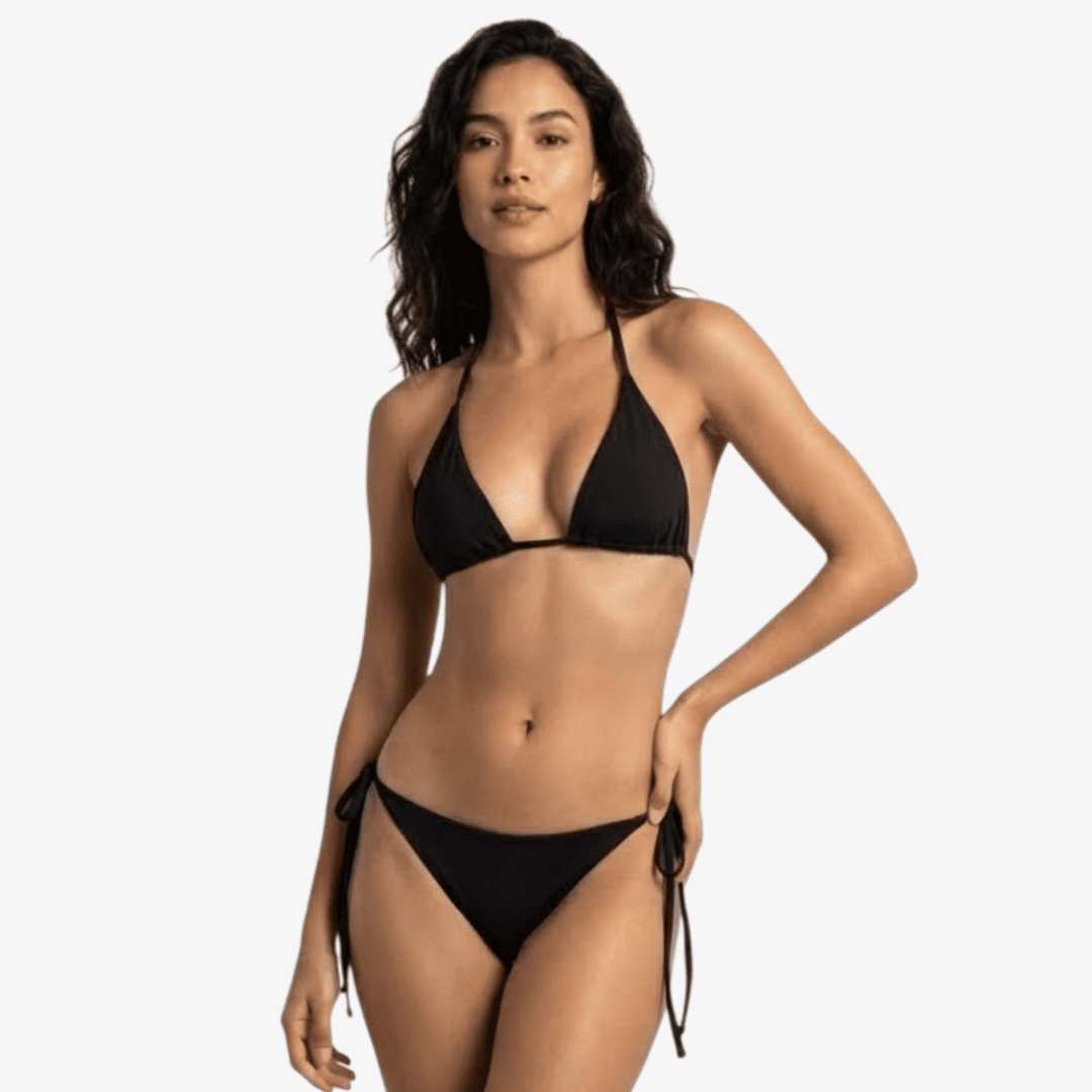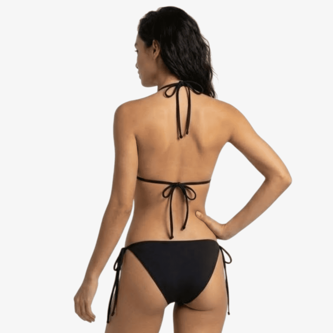 MARBELLA is the essential black bikini every woman needs. Classic and refined with a modern twist — its wraparound straps flatter your waist and give you that confident, elevated beach look.