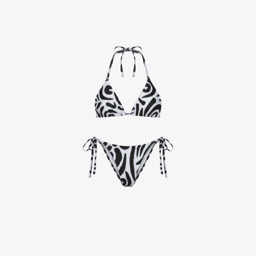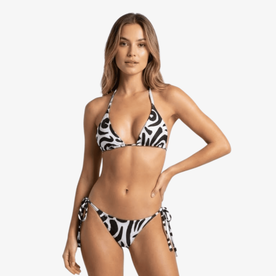 The ROATÁN bikini is where classic meets daring. With a striking black-and-white abstract print, it delivers a sophisticated, high-impact look made for confident women who love minimal style with maximum attitude.